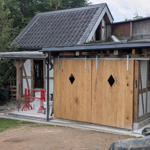 heute wollen wir wieder ein schönes Kundenprojetk vorstellen: Peter hat sich mehrere Schiebtüre im Sondermaß mit X-Verlattung bestellt, die er als Tore für sein Gartenhaus eingesetzt hat!
